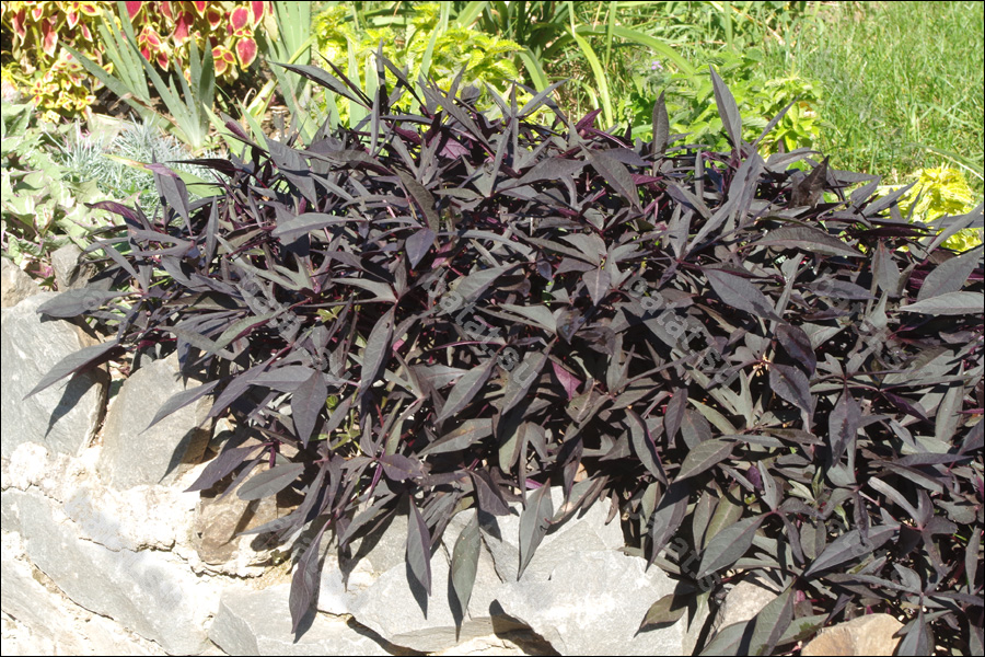 Сорт 43. Кустовой, суперкомпактный, с переменной окраской листа. В полутени на листьях появляются пятна. На полном солнце лист тёмно-фиолетовый без пятен. |